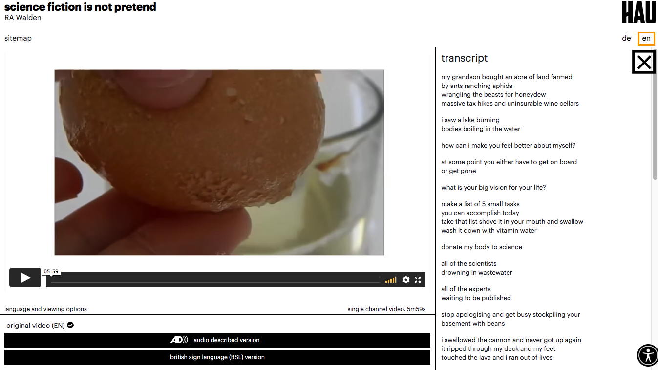 A site to premier and give accompanying research notes to RA Walden's film 'science fiction is not pretend'. Built with funding and support from HAU Berlin.